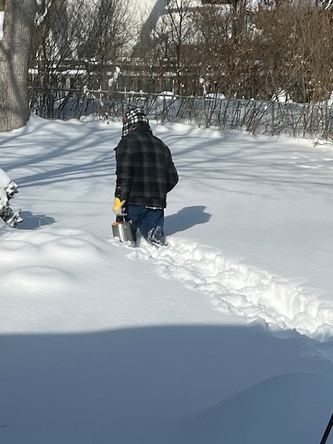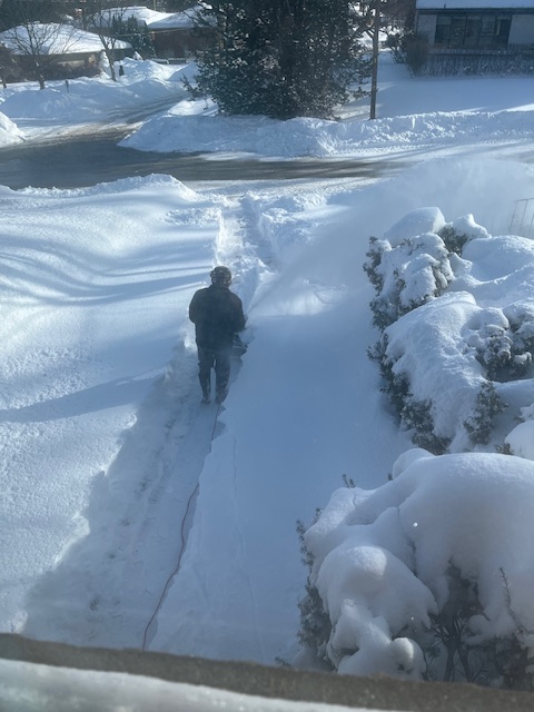 Our subway ride took us both longer than we had planned, due to the excessive crowds. We met at Yonge and Davisville and started walking. The sidewalks on our route were not in good shape: some cleared only a few inches wide, and some only stamped down into slippery grooves by earlier pedestrians. After half an hour we found the studio and all the other participants waiting for us.