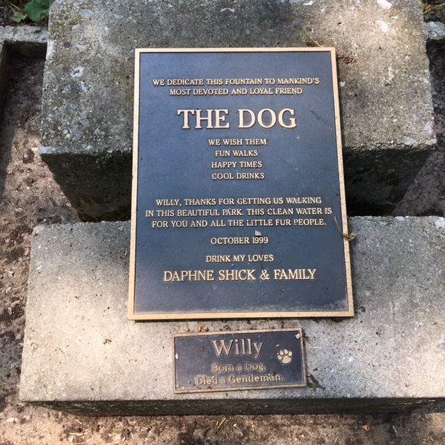 We were not alone. There were several families with little kids, who had escaped from the confinement of their homes. And there were dogs, plenty of dogs, heading to an off-leash dog park. One dog walker had even trained her 2-year-old to hold a leash. And there were plaques; to Willy and other prized family pets.