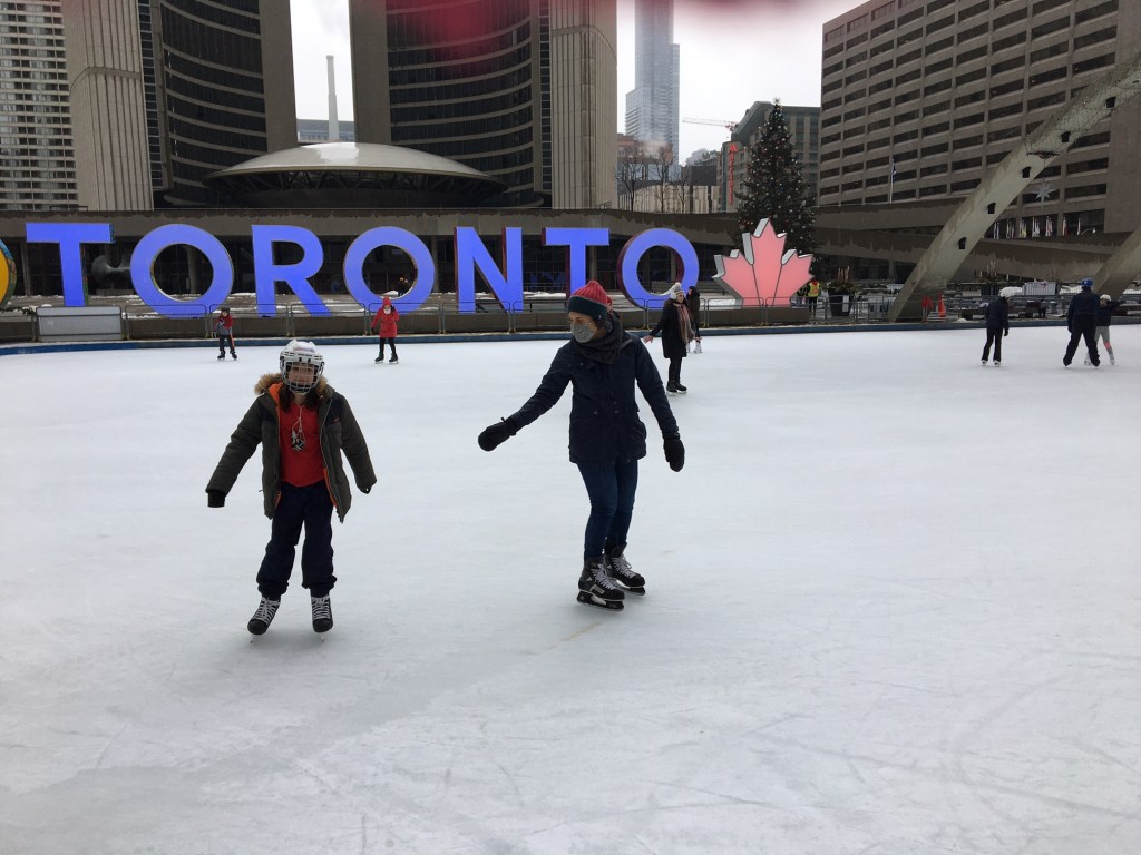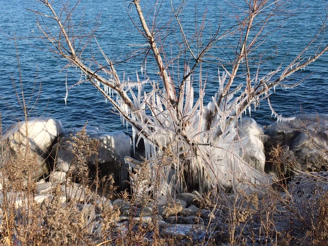 When the weather allows, there are some interesting places to go on foot. If you live near the Junction, you can explore the Window Wonderland by walking along Dundas between Keele and Quebec Ave, enjoying the art work in the store windows. If you live near downtown, you can head over to Nathan Phillips Square, buy a hot chocolate, and watch the skaters. If you live near Lake Ontario you can visit after a windy day and see the gorgeous ice sculptures formed on bushes by waves splashing up near the shore.