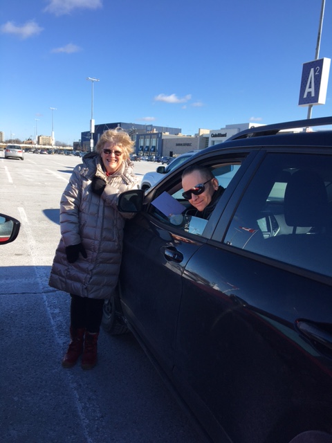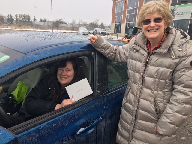 Finally someone in the restaurant answered the phone and I was able to order the birthday lunches. Then I dragged Peter away from his IPAD set-up and we drove to the restaurant. We parked in the parking lot beside James and his wife Glenda. We called the restaurant again, told them our parking spot number, and the food was delivered pretty fast. As we ate James’ birthday lunch in our separate cars, we rolled down one window each and talked at a distance We saw his new hairstyle and caught up on news.