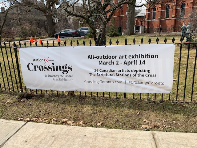 If you don’t want to travel that far, you can make the pilgrimage this year in downtown Toronto. Several arts and religious groups have organized an exhibit of the Stations. Called “Crossings,” 11 of the Stations are on the University of Toronto Campus and 5 more are on church properties at Yonge and St. Clair. The walk can take up to 3 hours, or you can cheat, like Peter and I did, and take the subway part-way.