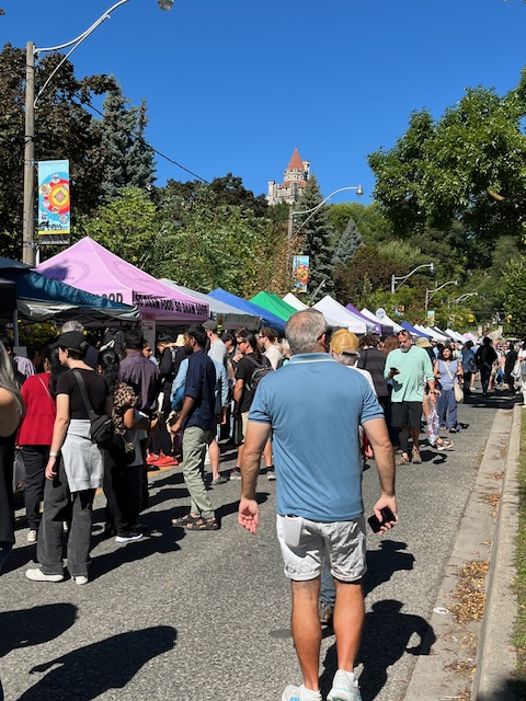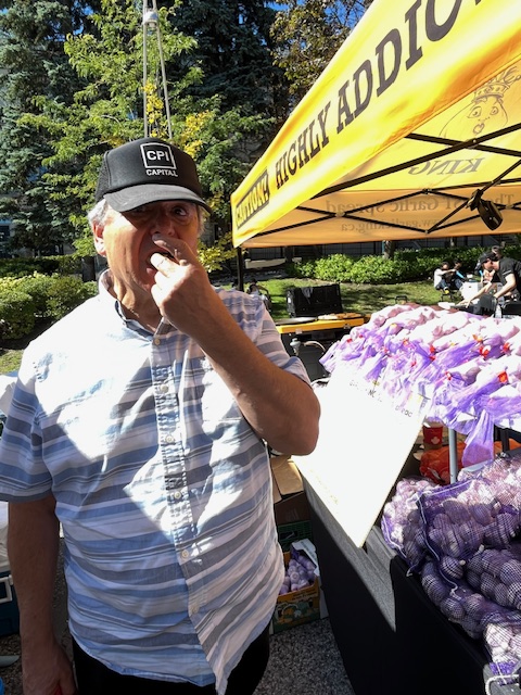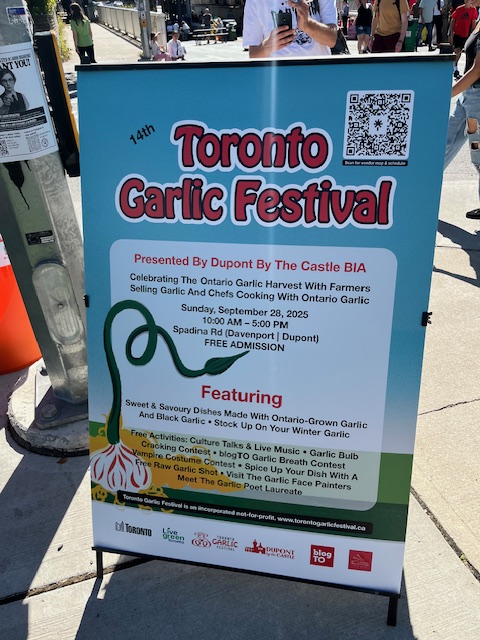 So when we read about a garlic festival happening in Toronto, of course we had to go. On Sunday morning Peter even skipped over a couple of sections of the newspaper just so we wouldn’t be late. We took the subway to the festival entrance on Spadina Ave, and then wandered up the crowded street. Who knew so many people love garlic?