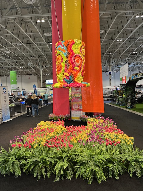 One of my reasons for wanting to visit Montreal was to see some installations by landscape architect Claude Cormier, famous for Sugar Beach, Berczy Park and Love Park, in Toronto. We saw 4 in his home town of Montreal. The grounds of the Clock tower at the Old Port are enhanced with a creation similar to our Sugar Beach. Dorchester Square has been reconfigured with bridges, benches and a fountain. The Ring separates 2 office buildings in Place Ville Marie. The most unique installation stands in the lobby of the Palais des Congress, a convention centre, where live trees and bushes are replaced by The Lipstick Forest.