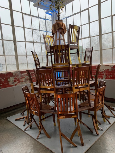 Another eye-catching display was called Roots and Branches: Dinner Legacies. Created entirely from perfectly-balanced chairs, this installation symbolized the generations of families who gathered around tables to share stories and celebrations and to support one another. The creation is topped with an olive tree representing peace, prosperity and friendship.