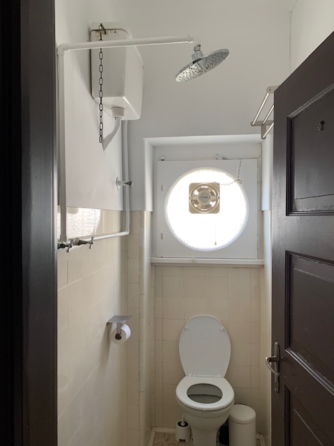 As the other families arrived, they set out on their own tour and chose their bedrooms. One family arrived with a sick husband and he was quickly diverted to a small bedroom near the front door close to a bathroom, although it seriously needed a make-over. It had a sink next to the shower stall, which was also the passageway to the toilet. The toilet could be flushed by pulling a chain hanging from the ceiling. Thee kids were highly amused but the sick person was not checking the decor.